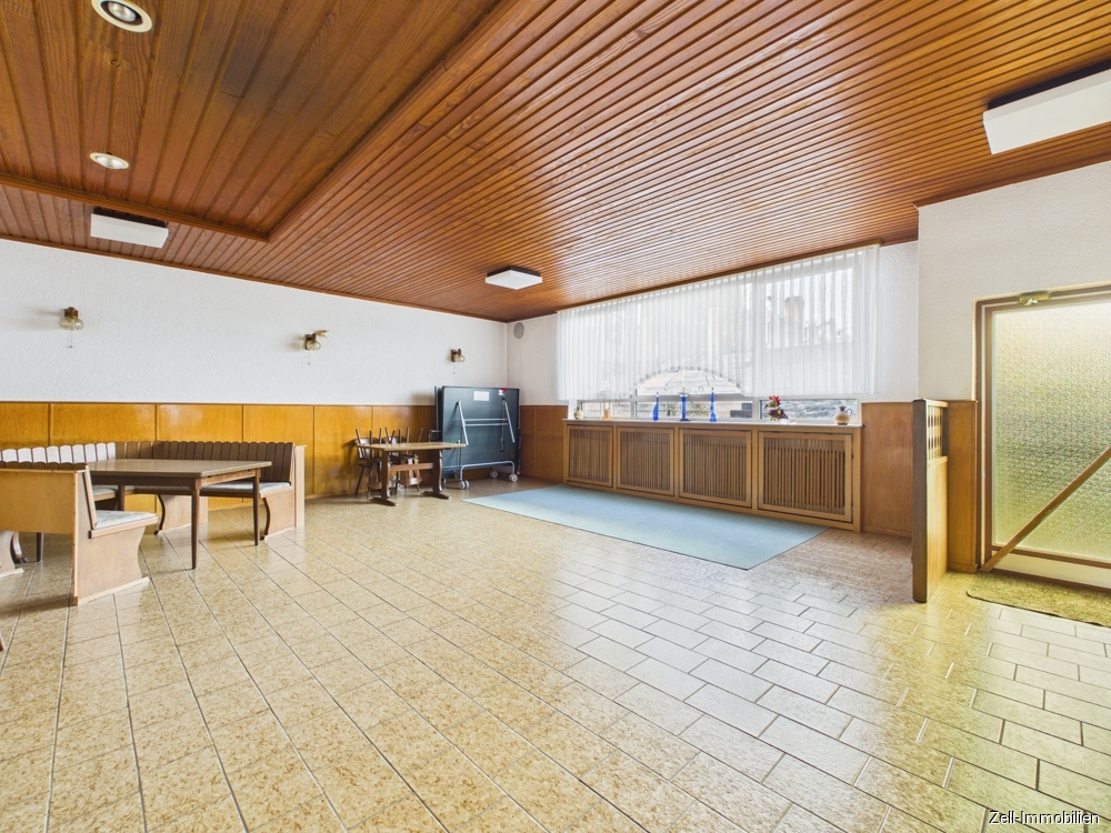 Die ehemalige Gaststätte hat einen separaten Zugang von der Seitenstraße und wurde früher gewerblich betrieben und kann zu Wohnraum umgestaltet werden.