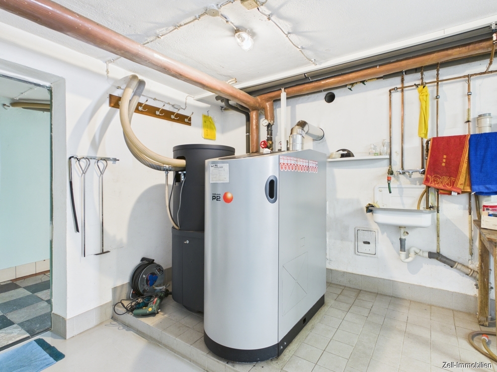 Ein Heizraum mit einer Pelletsheizung aus dem Jahr 2006 ist vorhanden. Zusätzlich steht ein eigener Raum für das dazugehörige Pelletslager zur Verfügung. Abgerundet wird das Raumangebot im Kellergeschoss durch eine Waschküche sowie einen weiteren Abstellraum.