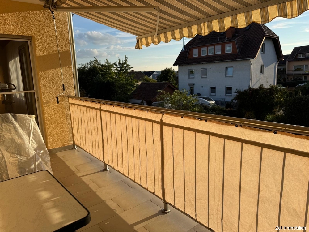 Vom Wohnzimmer und aus einem weiteren Zimmern haben Sie Zugang auf die große und sonnige Süd-West-Loggia mit Markise. Die Loggia wurde im Jahr 2022 erneuert.