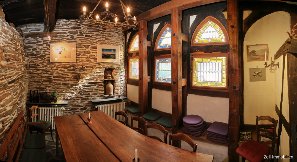 Der Vorbesitzer hat bereits alles für eine kleine Vinothek mit angeschlossenem Bruchstein-Weinkeller und einem weiteren Gästeraum im Erdgeschoss ausgebaut und im Nebenerwerb betrieben. Gästen und Wandertouristen (Rheinsteig) werden auch heute schon traditionelle Unterkünfte in der ehemaligen Mansarde im dazugehörigen Hinterhaus geboten. Entsprechend sind die Auflagen an Küche und Toiletten für den gastronomischen Kleinbetrieb erfüllt, womit sich mit diesen potenziellen Einnahmen das Haus bereits komplett finanzieren lässt.